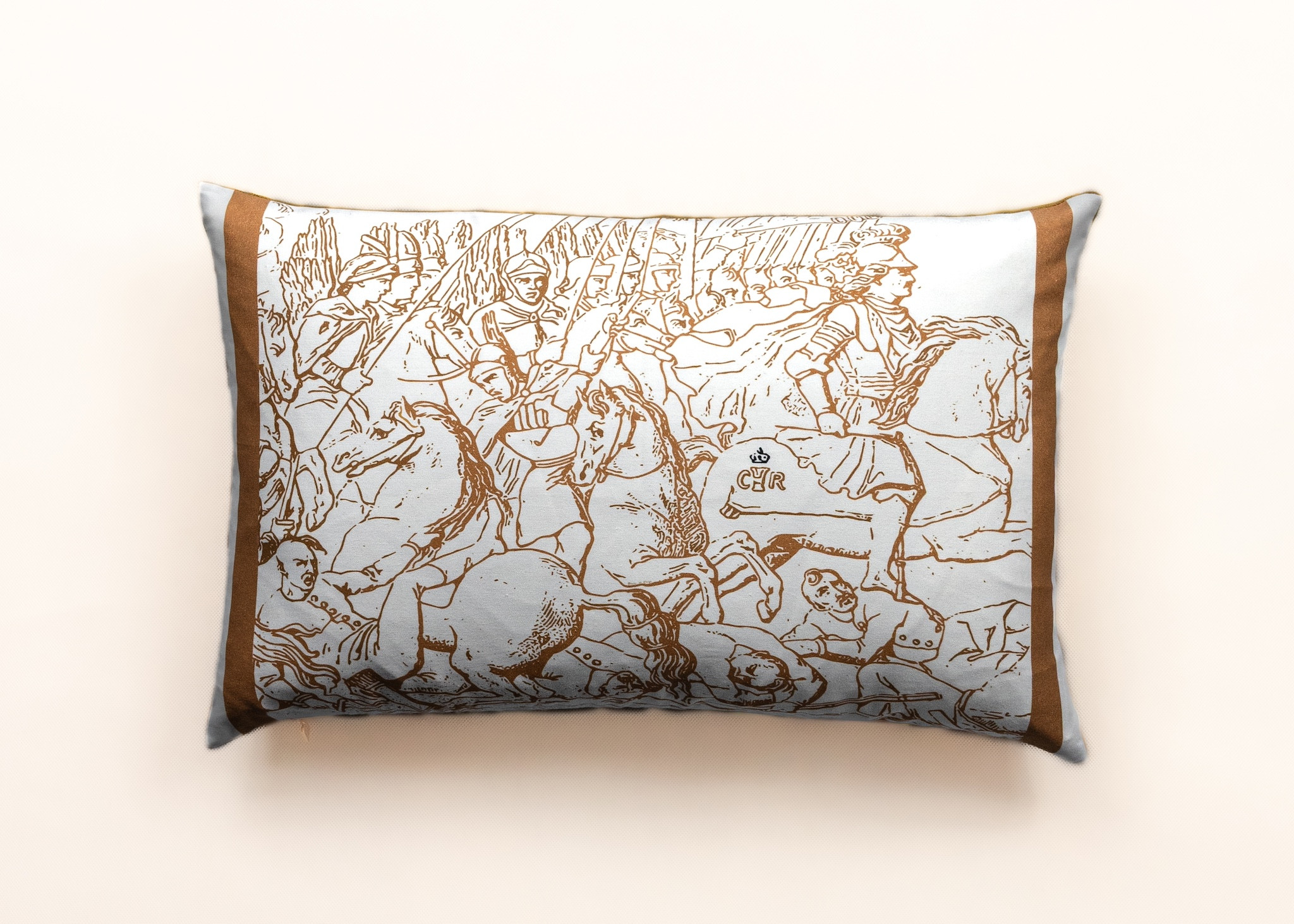 Battle of Beresteczko is part of our series commemorating Polish history. Created by French Benedictine monk Jean Thibaut, and later redrawn by Vernier. The piece depicts Polish Hussars led by King John II Casimir Vasa in the Battle of Beresteczko, during the Chmielnicki uprising. The time period in Polish history became legend, and was the base of Henryk Sienkiewicz’s “With Sword and Fire.” The design was carefully edited at Blanc et Rouge, to better match the organic cotton that it is printed on. The back is made of presoftened pure linen. Available in three colors. All our cushions include a duck feather insert, and the iconic B&R zipper. Proudly handmade in Poland.