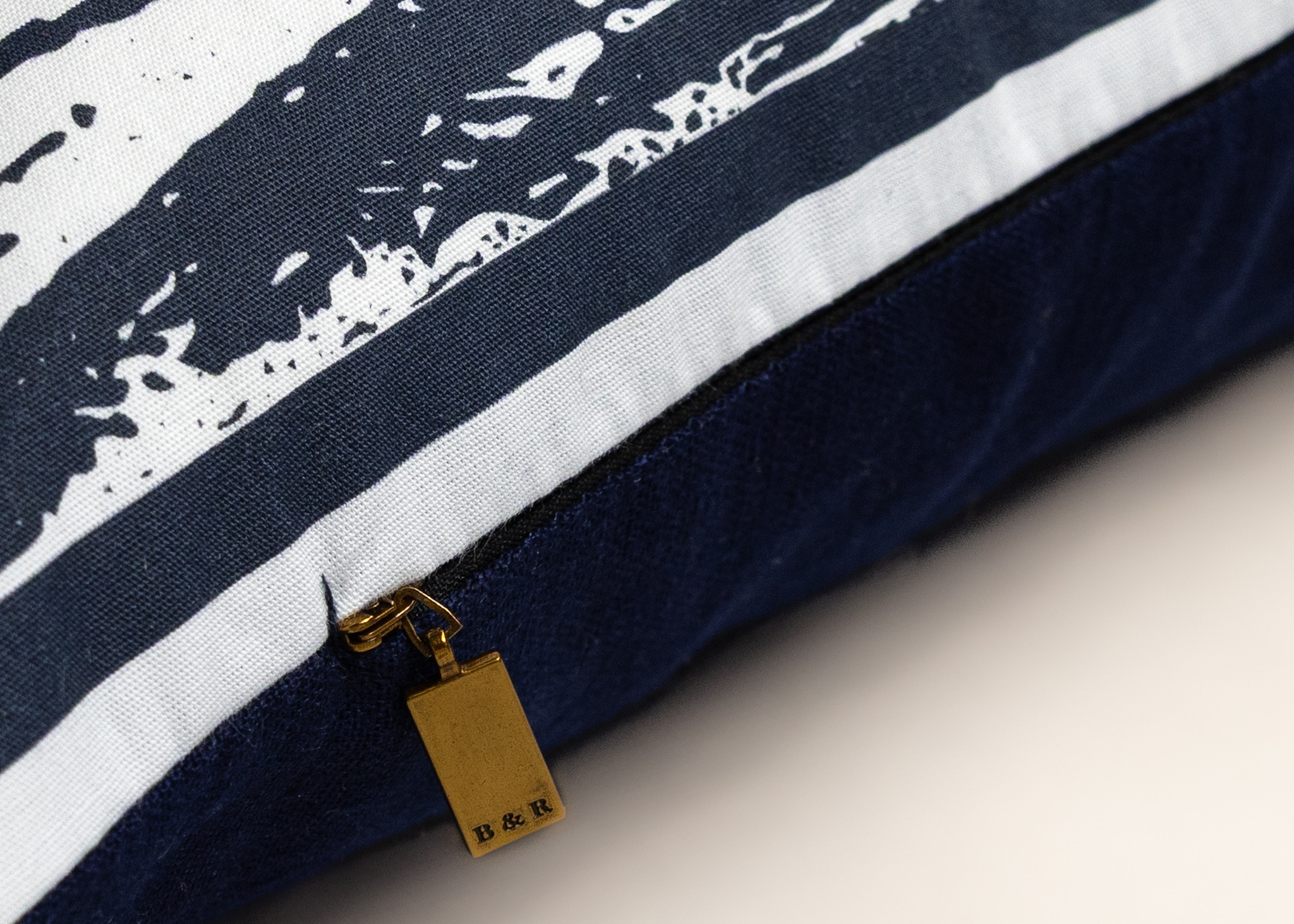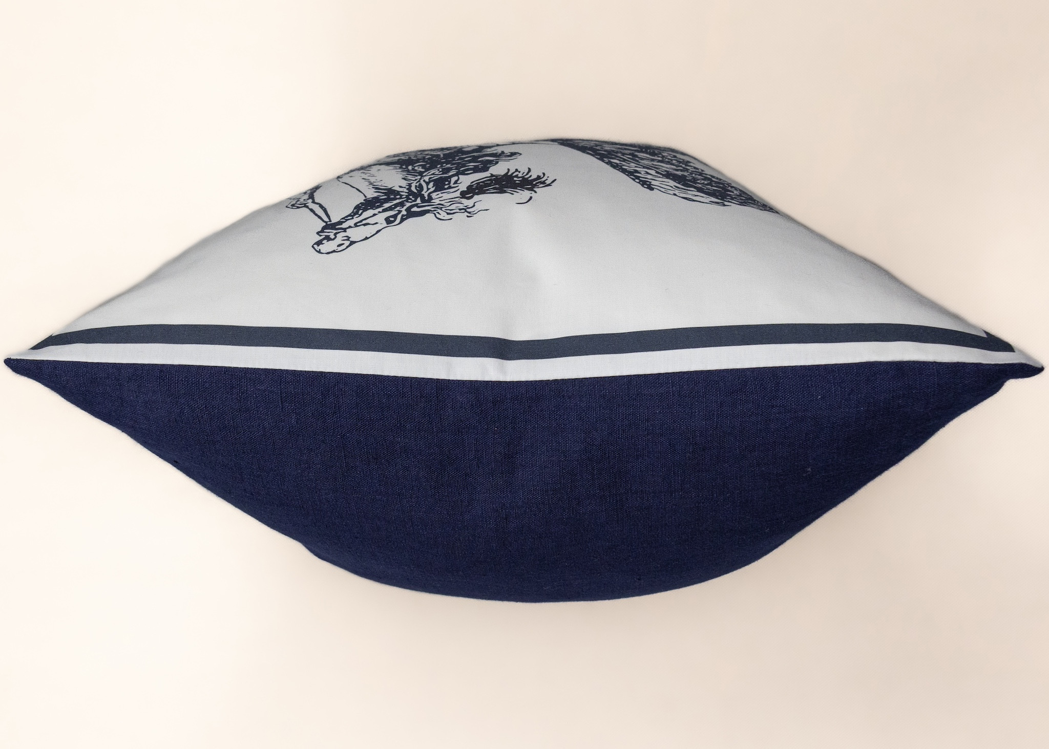 Certamen Equestre is a cornerstone of our series commemorating Polish history. Created by Georg Cristoph Eimart in 1672, the scene presents a Polish Hussar and his horse - A timeless piece of art. The initially engraved design was edited at Blanc et Rouge, later pigment printed on a soft organic cotton and framed with a dark navy edge on the sides of the cushion. The back is made of a midnight blue colored presoftened pure linen. All our cushions include a duck feather insert, and the iconic B&R zipper. Proudly handmade in Poland.