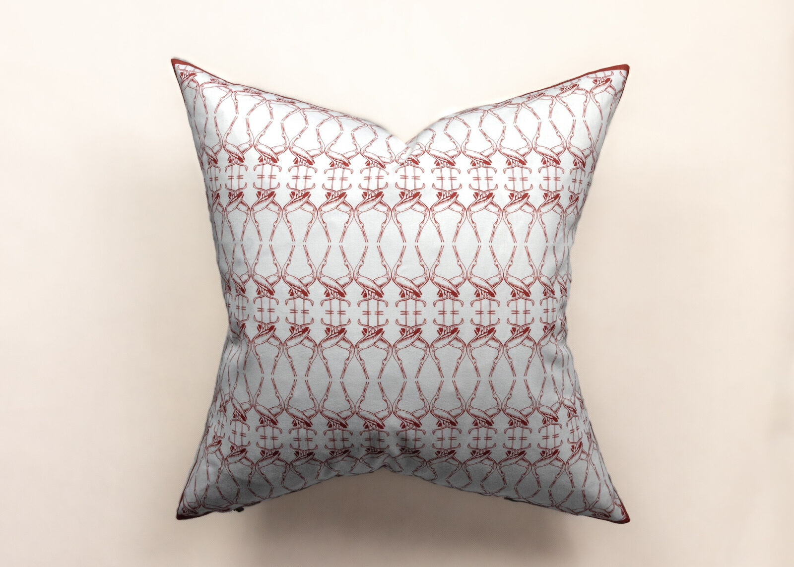 The Stork is the Blanc et Rouge pride and joy. The geometric repeat pattern built of the Blanc et Rouge storks is printed on organic white cotton, and framed in a red border visible on the sides of the cushion. The back is composed of white pre-softened pure white linen. All our cushions include a duck feather insert, and the iconic B&R zipper. Proudly handmade in Poland.